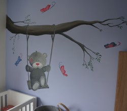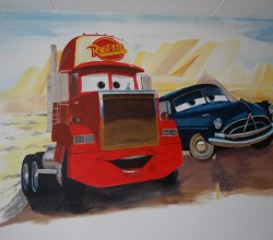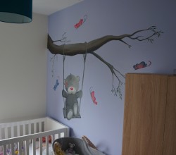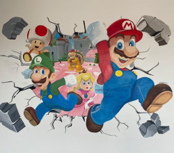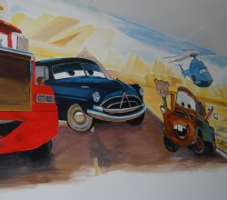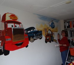 Een muurschildering moet goed voorbereid worden. Er wordt geschilderd met acylverf, en dit geeft hele mooie kleuren.