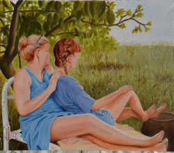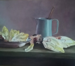 Met deze techniek werk ik graag. Omdat er olie in de verf zit, droogt deze langzaam. Daardoor laag over laag schilderen, je kunt er eindeloos mee doorgaan en steeds corrigeren, of verfijnen. Hoe meer lagen , hoe mooier het schilderij.